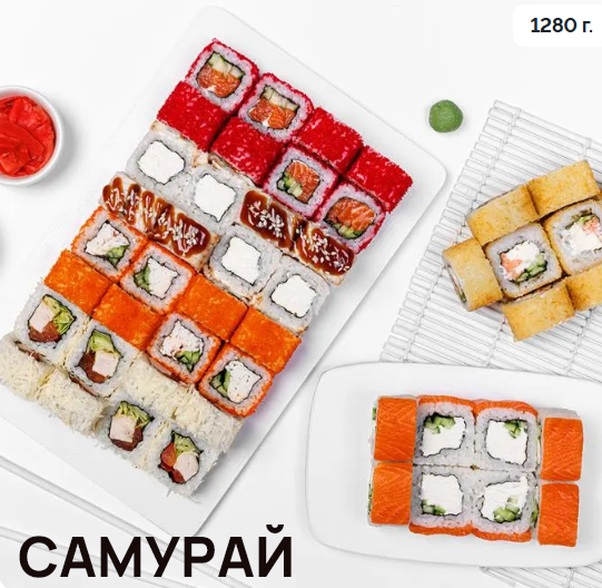 * к каждому роллу: соевый соус (20 г), имбирь (10 г), васаби (5 г)